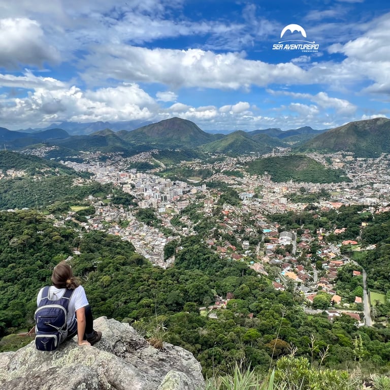 Trilha incrível com vistas para a Serra dos Órgãos e Três Picos