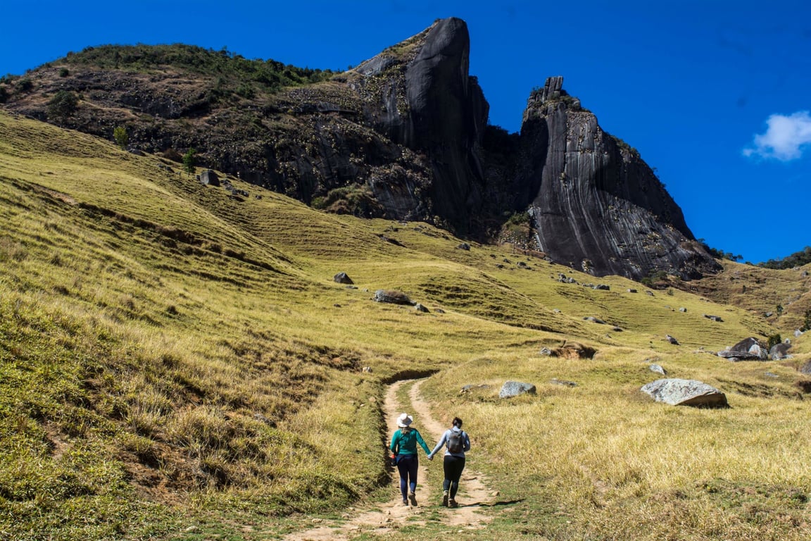 Os Dois Bicos, também conhecidos como Frade e a Freira, são um dos cenários mais impressionantes do Vale dos Frades. Essa trilha leva você ao cume do Bico Maior, a 1.520 metros de altitude, onde é possível contemplar as montanhas do Parque Estadual dos Três Picos e toda a beleza do Vale dos Frades.